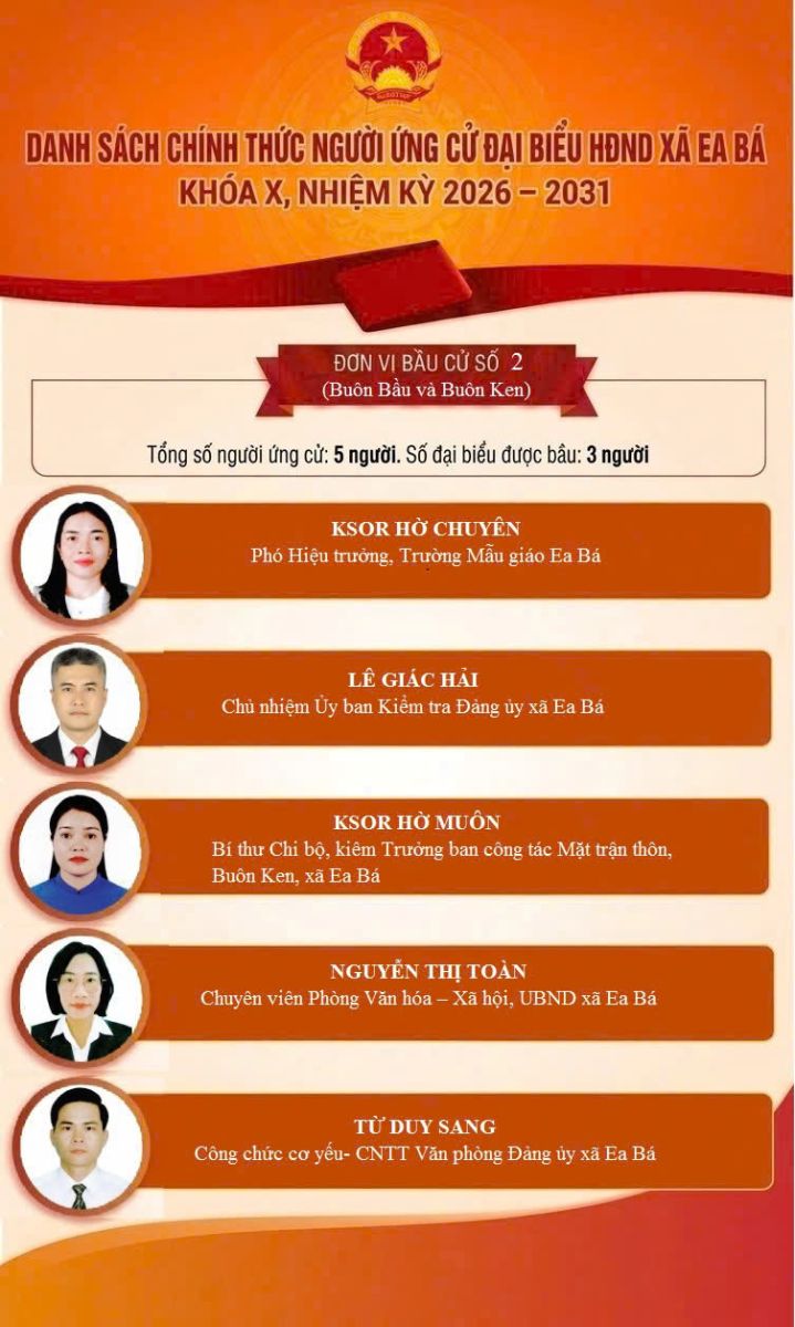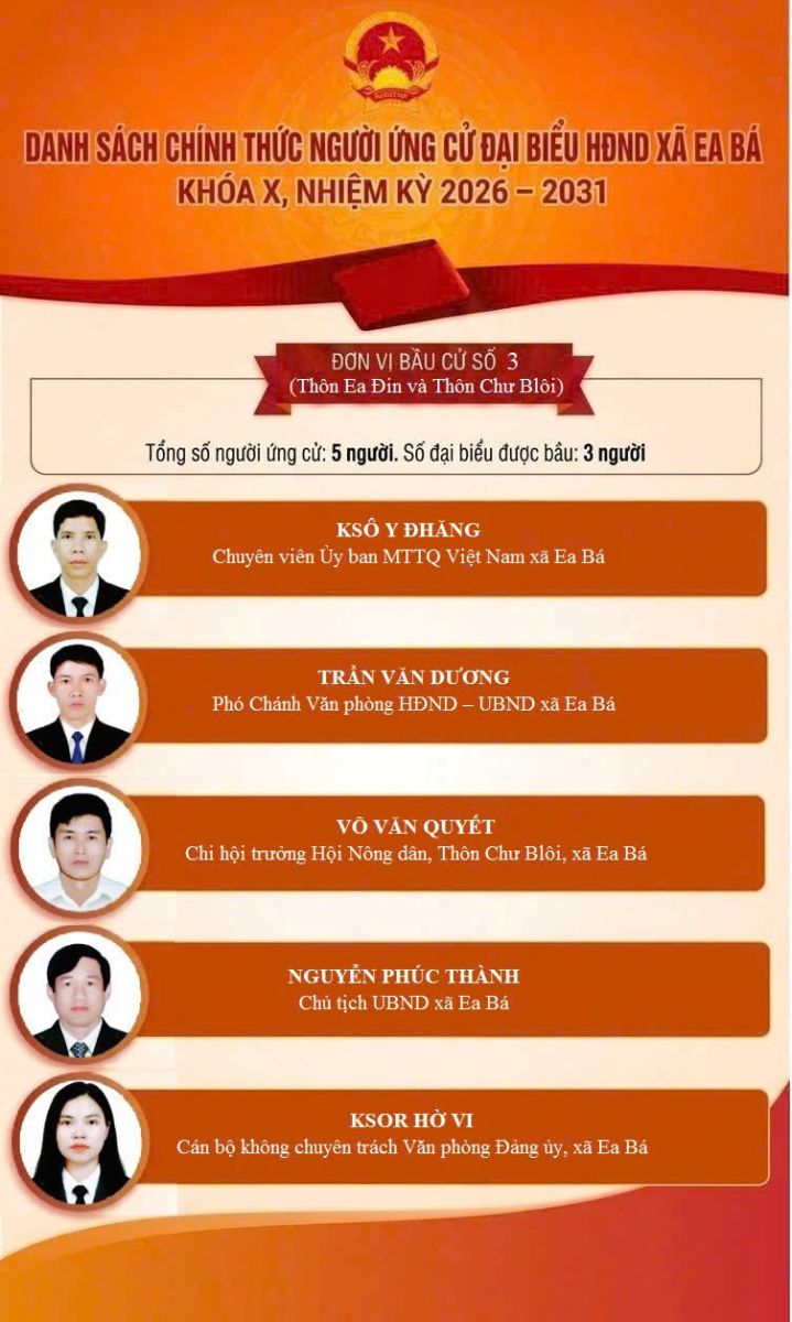 DANH SÁCH ỨNG CỬ VIÊN ĐẠI BIỂU QUỐC HỘI KHÓA XVI, ĐẠI BIỂU HỘI ĐỒNG NHÂN DÂN TỈNH VÀ ĐẠI BIỂU HỘI ĐỒNG NHÂN DÂN XÃ EA BÁ