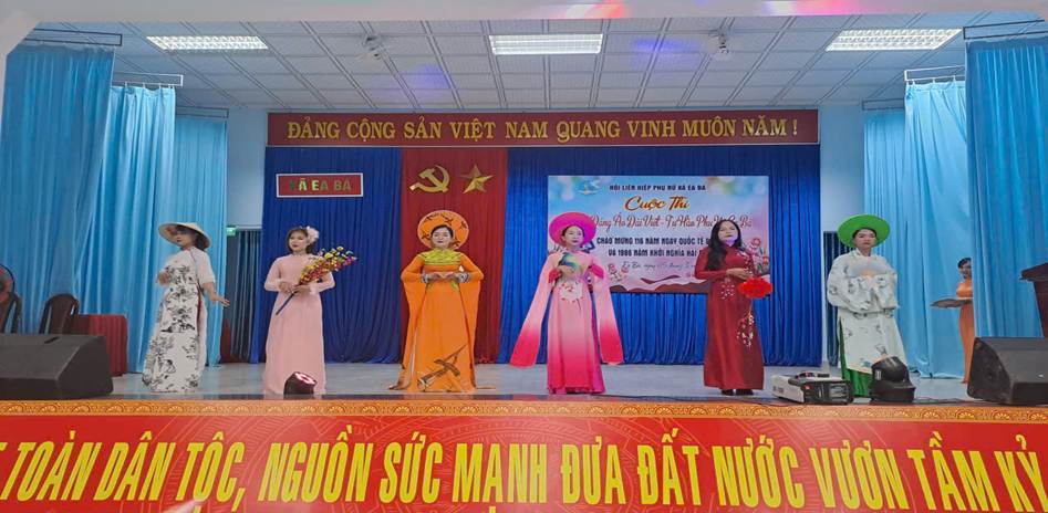 HỘI LHPN XÃ EA BÁ TỔ CHỨC THÀNH CÔNG CUỘC THI “DUYÊN DÁNG ÁO DÀI VIỆT – TỰ HÀO PHỤ NỮ EA BÁ” CHÀO MỪNG 96 NĂM NGÀY QUỐC TẾ PHỤ NỮ 08/3 VÀ 1986 NĂM CUỘC KHỞI NGHĨA HAI BÀ TRƯNG.