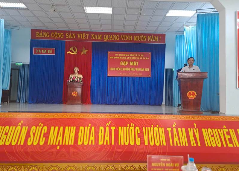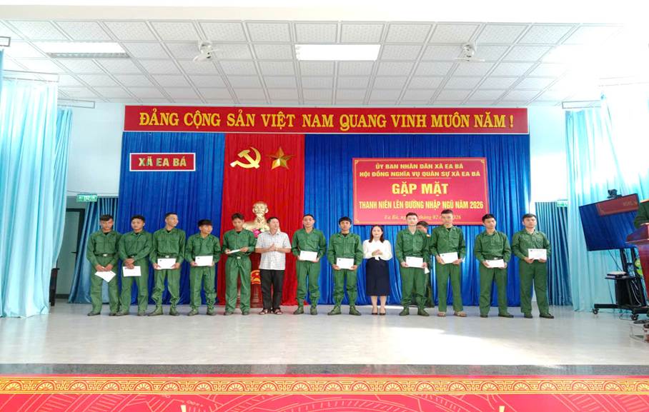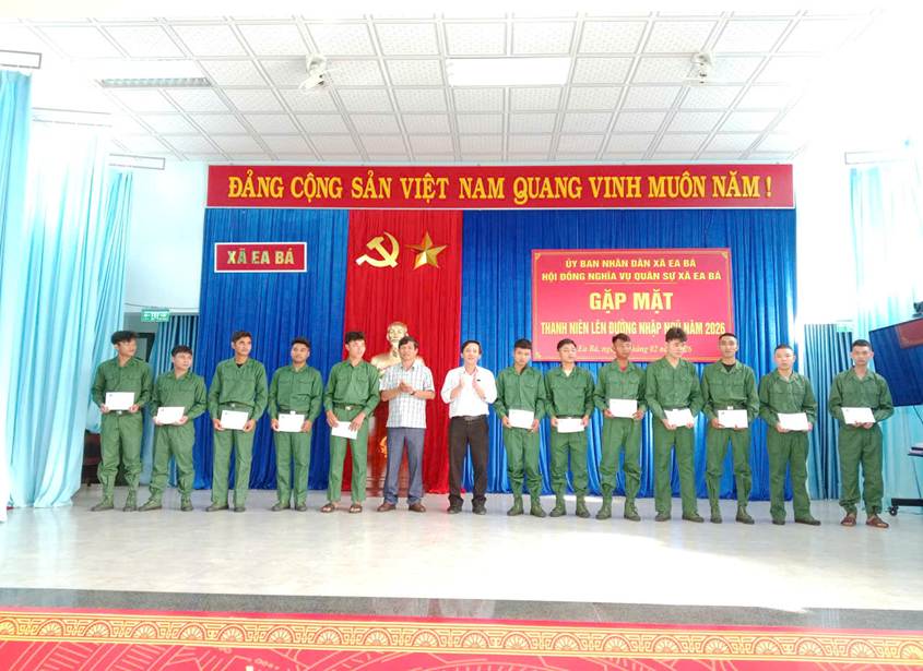 Sáng ngày 27/02/2026, Hội đồng nghĩa vụ quân sự xã Ea Bá tổ chức gặp mặt 39 thanh niên lên đường nhập ngũ năm 2026 (trong đó: 33 thanh niên thực hiện nghĩa vụ quân sự, 06 thanh niên thực hiện nghĩa vụ công an) đến từ các thôn, buôn trên địa bàn xã.