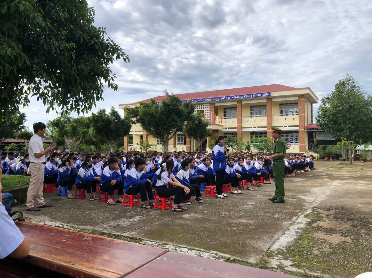 -> Thông qua buổi tuyên truyền, Công an xã quán triệt, nhắc nhở các em học sinh nghiêm chỉnh chấp hành luật an toàn giao thông đường bộ là bảo vệ chính mình, bảo vệ những người xung quanh, đồng thời chúc các em có một năm học mới hiệu quả, an toàn, lành mạnh.