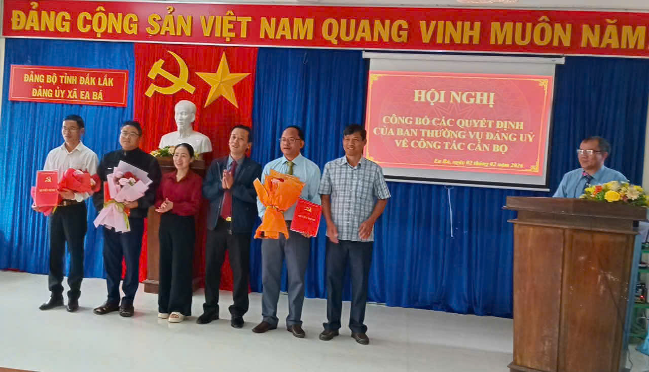 Sáng 02/02/2026, Ban Thường vụ Đảng uỷ xã Ea Bá tổ chức Hội nghị công bố các quyết định về công tác cán bộ. Đồng chí Nguyễn Hoài Vũ – Bí thư Đảng uỷ, chủ tịch HĐND xã chủ trì Hôi nghị.