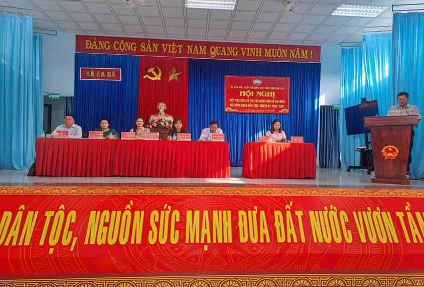 Sáng ngày 03/3/2026, tại UBND xã Ea Bá, Ban Thường trực Ủy ban MTTQ Việt Nam xã Ea Bá tổ chức hội nghị tiếp xúc cử tri để các ứng cử viên đại biểu HĐND tỉnh nhiệm kỳ 2026 – 2031 (đơn vị bầu cử số 7) thực hiện quyền vận động bầu cử.