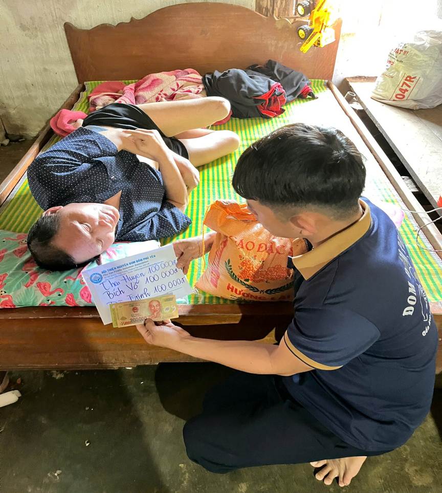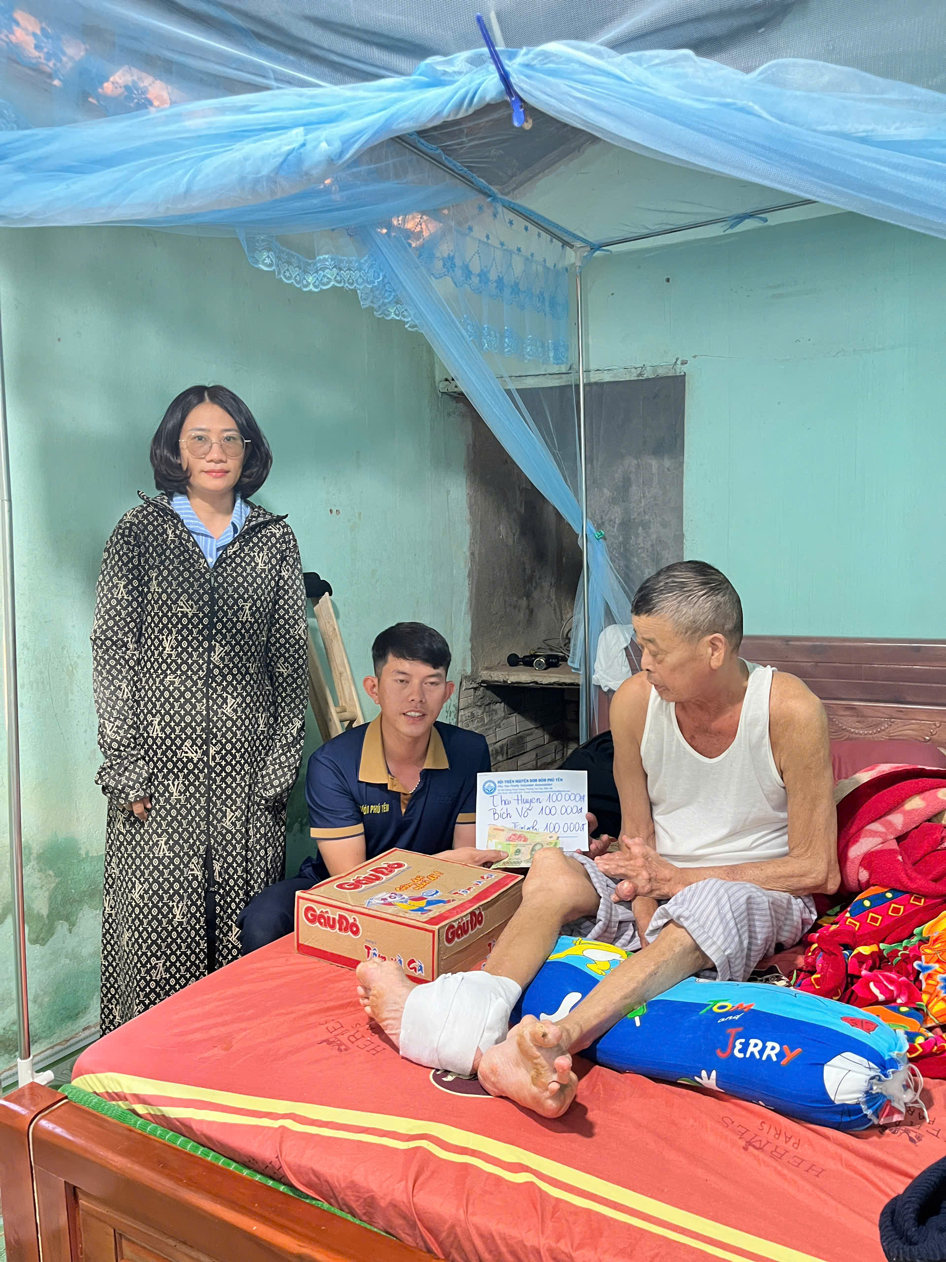 Đại diện Hội đã trực tiếp trao tận tay 10 suất quà với tổng giá trị hơn 3 triệu đồng và các nhu yếu phẩm như mì tôm, gạo, sữa.
