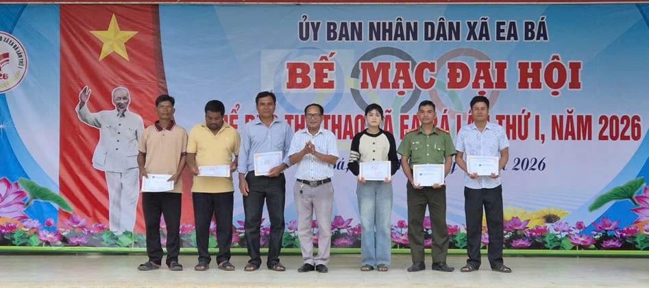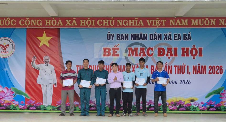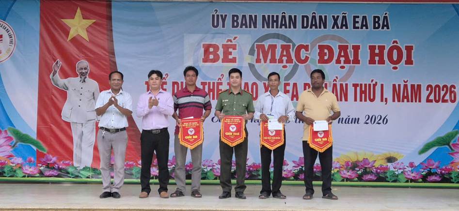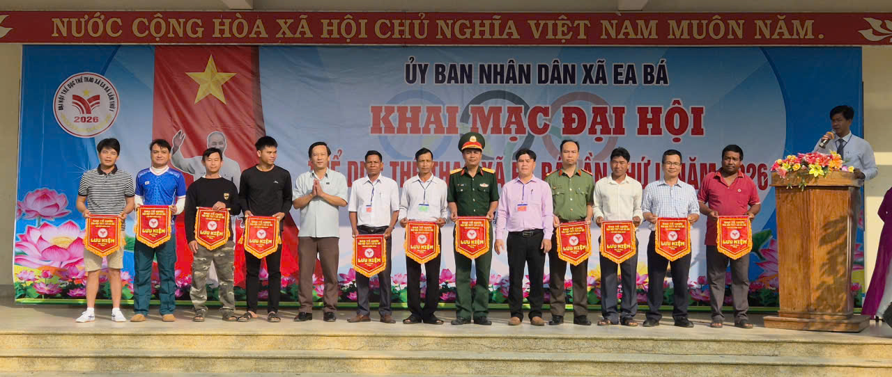 Hôm nay, ngày 10/4/2026, UBND xã Ea bá long trọng tổ chức khai mạc Đại hội Thể dục Thể thao xã Ea Bá lần thứ I năm 2026. Đến dự Lễ có đồng chí Nguyễn Hoài Vũ, Bí thư Đảng ủy - Chủ tịch HĐND xã; đồng chí Ksor Y Diêu – UVBTV Đảng ủy – Phó Chủ tịch HĐND xã; Đồng chí Nguyễn Phúc Thành, Phó Bí thư Đảng ủy, Chủ tịch UBND xã - Trưởng ban Tổ chức Đại hội; đồng chí Nguyễn Văn Hải, Đảng ủy viên, Phó Chủ tịch UBND xã – Phó trưởng ban Tổ chức Đại hội; đồng chí Huỳnh Hờ Rươi, UVBTV Đảng ủy – Chủ tịch UBMTTQ VN xã cùng các đồng chí Lãnh đạo các cơ quan giúp việc của Đảng ủy, lãnh đạo các phòng, các Trung tâm thuộc UBND xã; Lãnh đạo và chiến sĩ công an xã; Lãnh đạo Ban CHQS và lực lượng dân quân xã; Lãnh đạo các đơn vị trường học, trạm y tế trên địa bàn xã; Bí thư chi bộ, Trưởng thôn, buôn, Trưởng Ban công tác mặt trận, các đ/c trong BTC, tổ trọng tài và hơn 200 vận động viên, huấn luyện viên của 14 đoàn tham gia thi đấu, cùng bà con nhân dân và các em học sinh đến tham dự và cổ vũ cho Đại hội.
