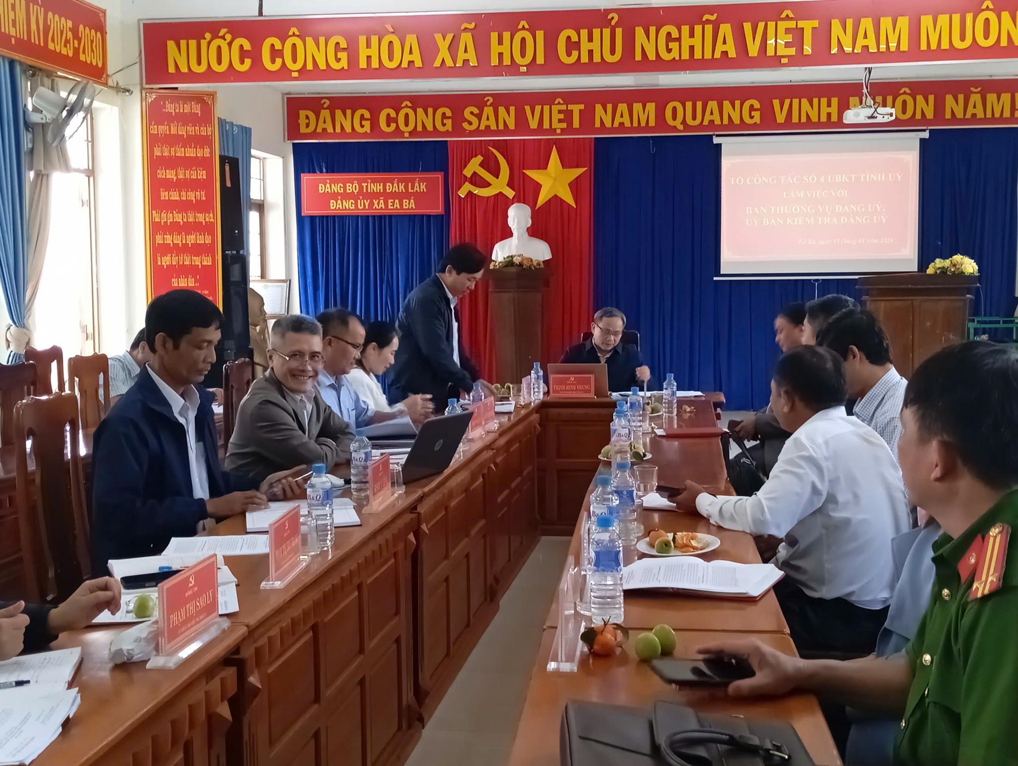Sáng ngày 15/01/2026, Tổ Công tác số 04 của Ủy ban Kiểm tra Tỉnh ủy do đồng chí Trịnh Minh Nhung – Phó Chủ nhiệm UBKT Tỉnh ủy, Tổ trưởng đã về làm việc với Ban Thường vụ Đảng ủy xã Ea Bá để nắm tình hình, thực hiện giám sát thường xuyên theo Kế hoạch số 25-KH/UBKTTU, ngày 12/8/2025 của Ủy ban Kiểm tra Tỉnh ủy.