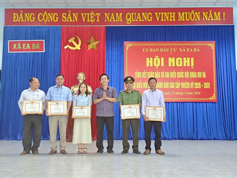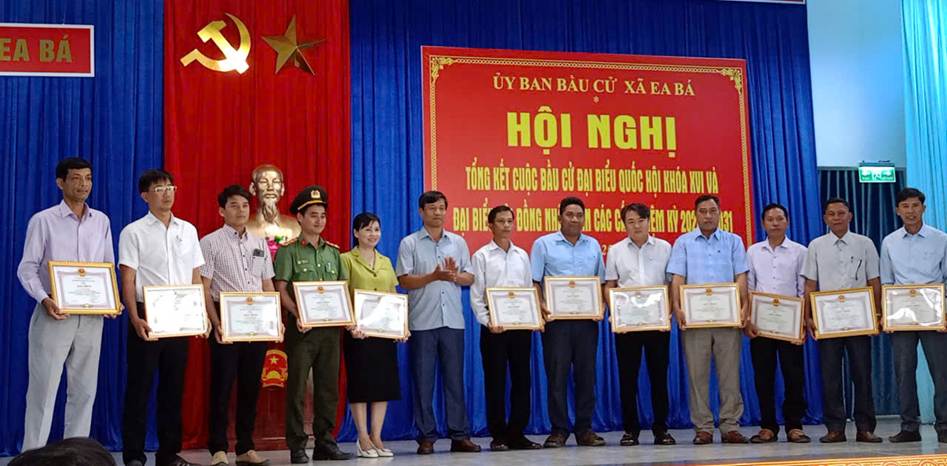 Ủy ban Bầu cử xã Ea Bá đã khen thưởng 05 tập thể và 30 cá nhân có thành tích xuất sắc trong công tác bầu cử, góp phần vào thành công chung của cuộc bầu cử tại địa phương.