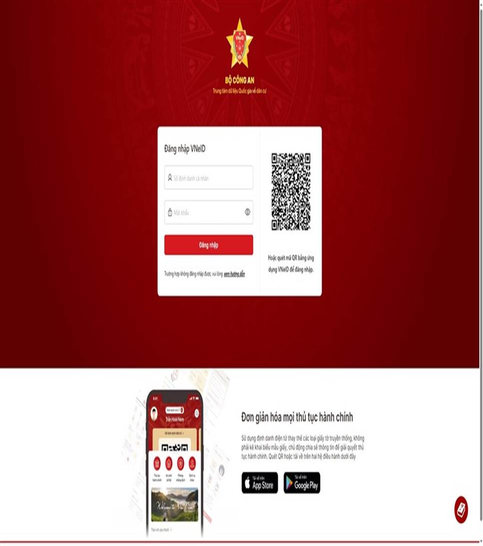 Bước 3: Đăng nhập bằng tài khoản VneID: nhập số căn cước công dân, mật khẩu, mã OPT gửi về số điện thoại đăng ký VneID. Hoặc sử dụng mã quét trên ứng dụng VneID để quét mã QR đăng nhập.